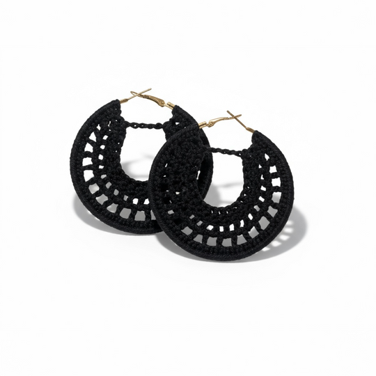 Black Crochet Hoop Earrings