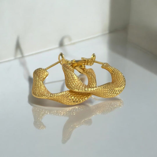 Turn heads with our Dazzle Drop Earrings. Featuring a stunning semi-spiral pattern crafted from stainless steel and electroplated in gold, these earrings are a bold statement piece. Their unique design adds a dash of sophistication, making...Regular price $39.99 -