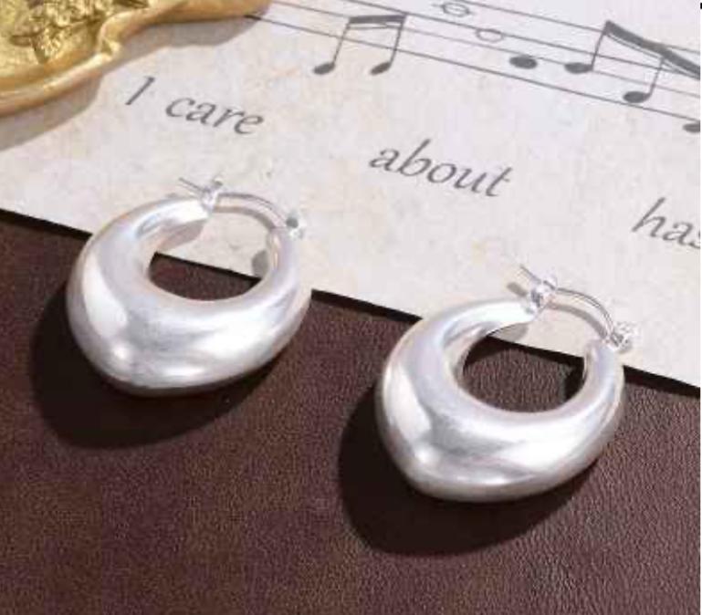 A modern take on classic hoops. The Lunar Drops offer a sleek silver finish and a softly curved silhouette that frames your face just right. Minimal, bold, and endlessly chic.